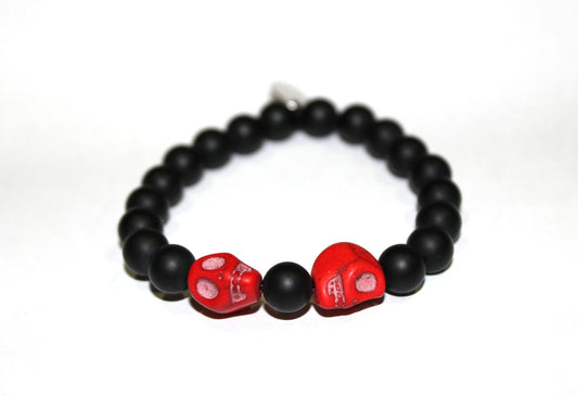 Black Onyx Bead Bracelet with Skulls Beads- UDINC0440