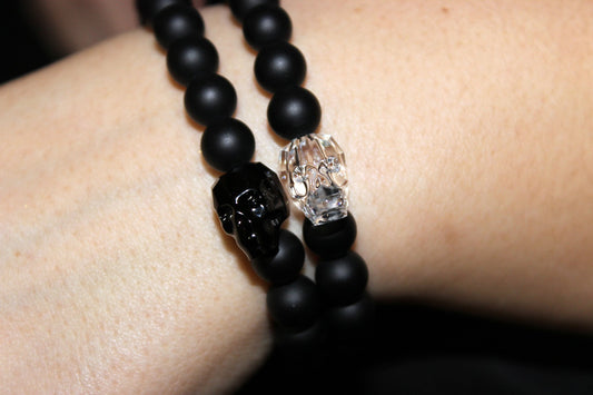 Black Onyx Bead Bracelet with Swarovski Crystal Skulls- UDINC0440