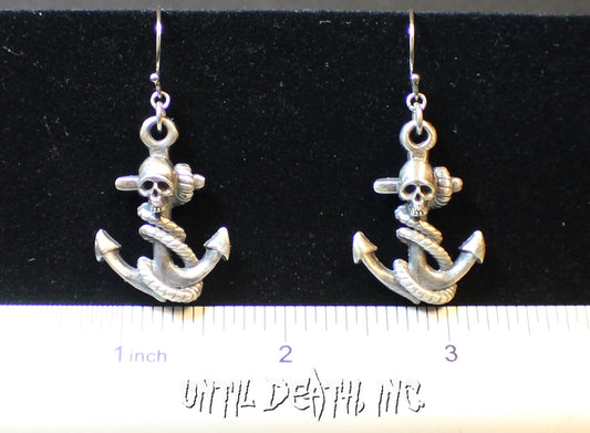 Until Death, Inc. " Anchor & Skull " Solid .925 Sterling silver.Dangle Earring Pair