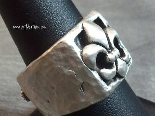 Until Death, Inc. Fleur De Lis Brushed Hammered Heavy 925 Sterling Silver Ring.-UDINC0022