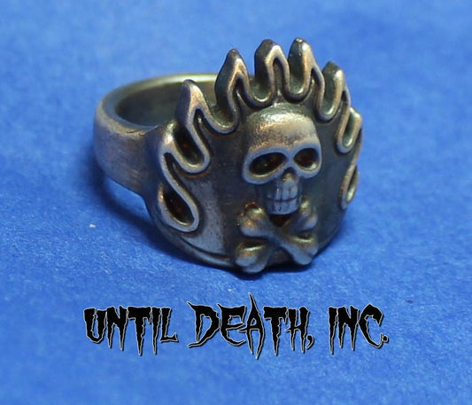 Flaming Crossbones Skull Ring-UDINC0045