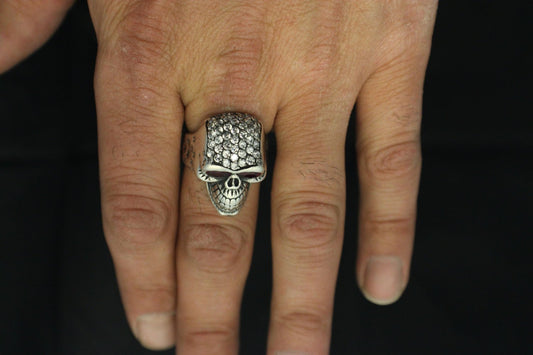 Custom Diamond Pave' Smiling Skull Ring With Ruby Eyes in STERLING SILVER- UDINC0073