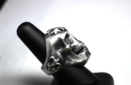 Maltese Cross &Fleur de Lis "Big Daddy" Biker Skull Ring. 925 Sterling Silver-UDINC0005