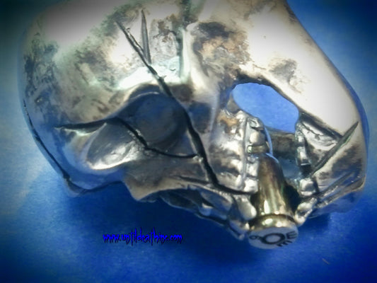 Big Daddy cracked skull with 9mm cartrage in Head in Sterling Silver -UDINC008