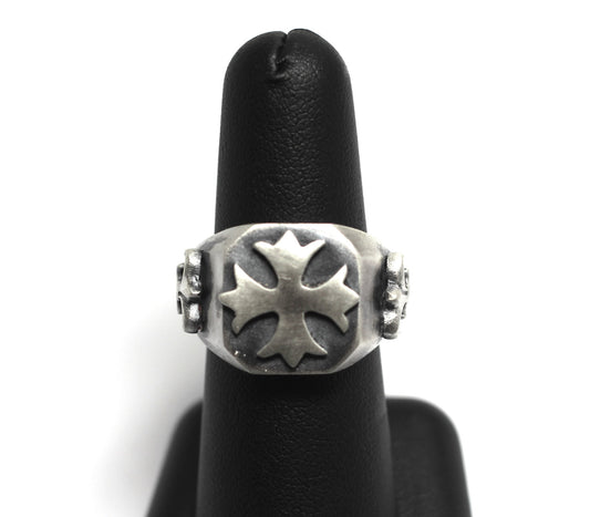 Until Death, Inc. Maltese Cross Signet Ring with Fleur De Lis Accents. Solid 925 Sterling Silver.