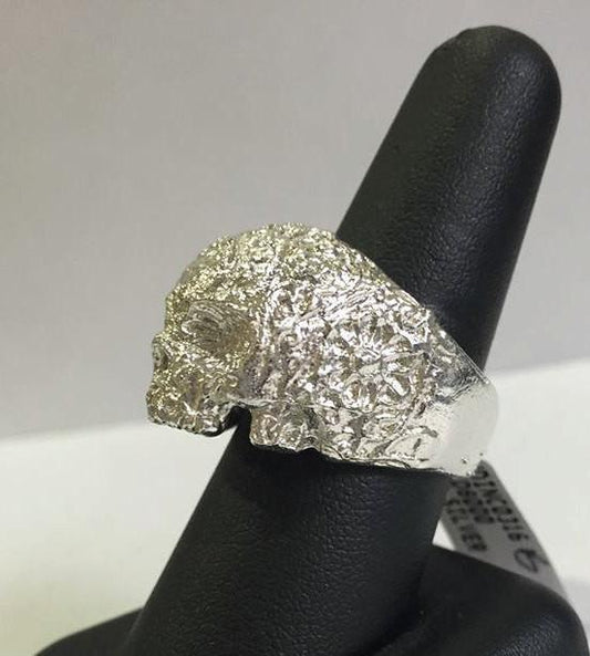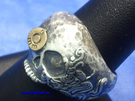 Hammered Fiji Skull Ring With Bullet in Eye in STERLING SILVER-UDINC0024