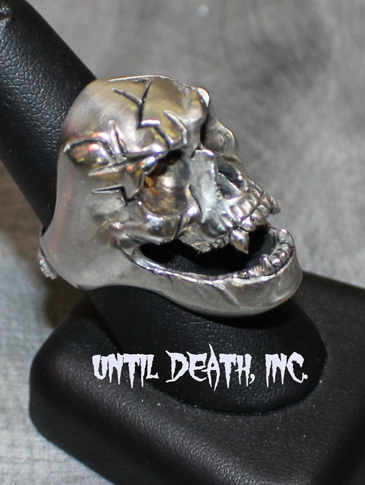 Until Death, Inc. "Zombie Ring" Huge .925 Sterling Silver Biker Skull Ring.-UDINC0092