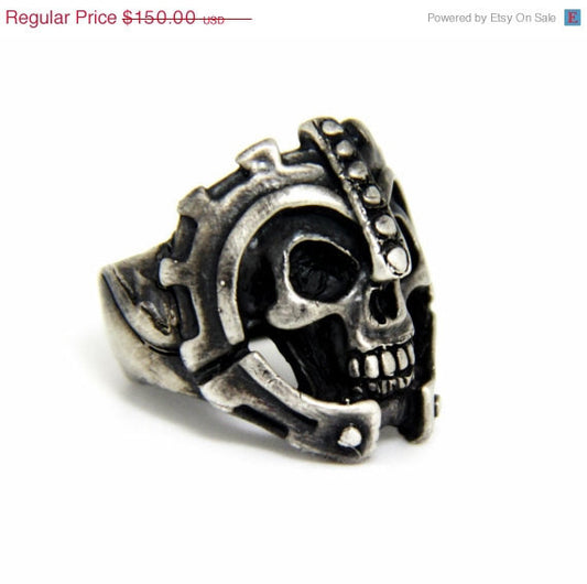 Until Death, Inc. "Warrior Skull Ring" Huge .925 Sterling Silver Biker Skull Ring.-UDINC0081
