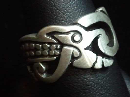 Aztec Mayan Serpent Jaguar .925 Sterling Silver Ring.-UDINC0018