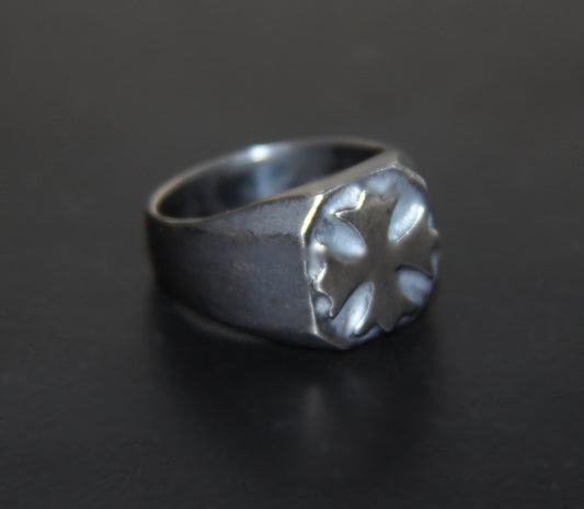 Until Death, Inc. Maltese Cross Signet Ring Gun Metal Finish. Solid 925 Sterling Silver.-UDINC0028