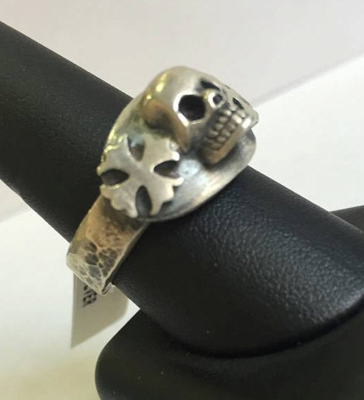 Momento Mori Small Crusty Skull Pirate Ring in Sterling Silver Ring-UDINC0013