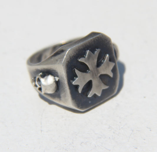 Until Death, Inc. Maltese Cross Signet Ring with Skull Accents. Solid 925 Sterling Silver.-UDINC0029