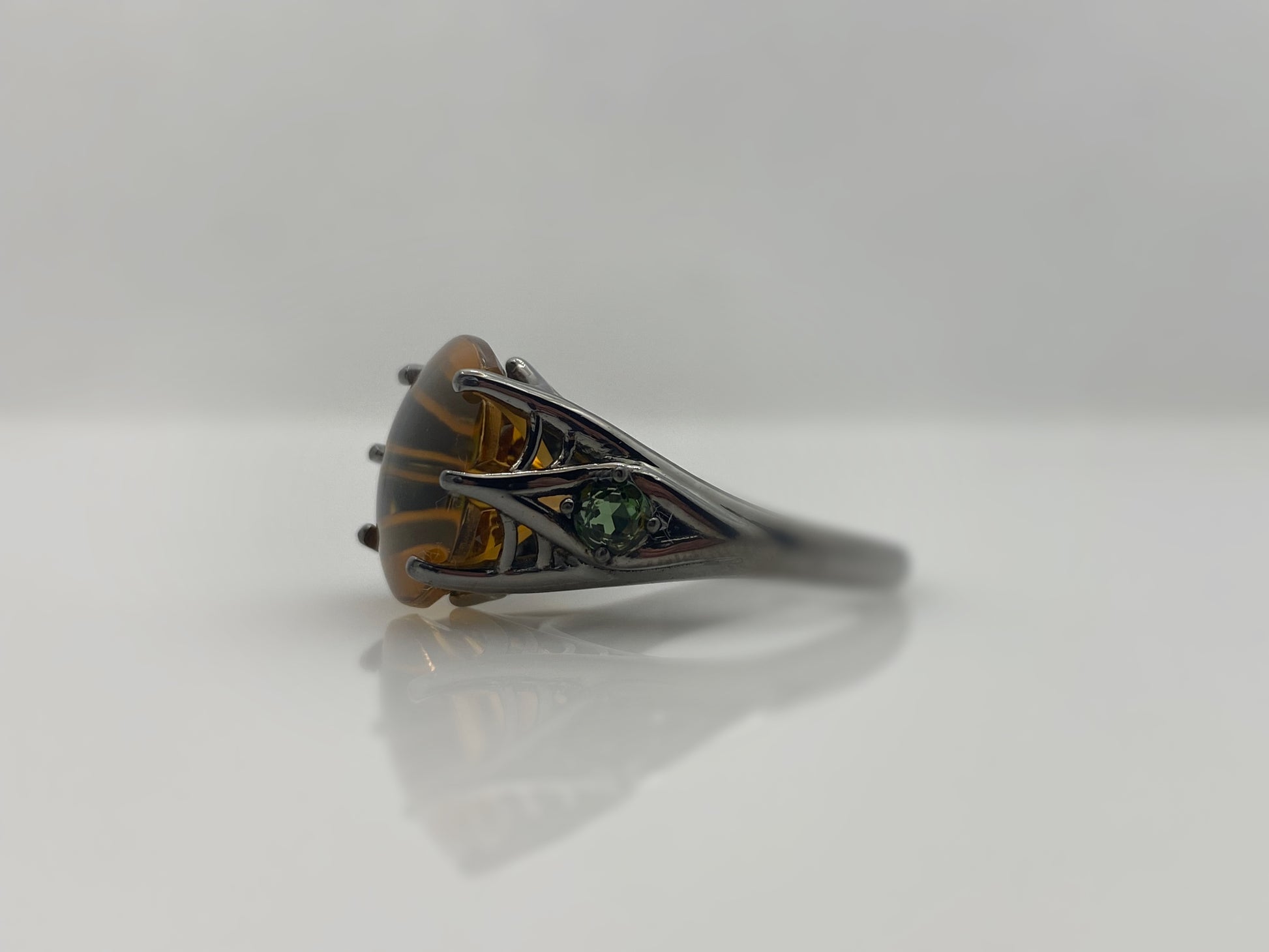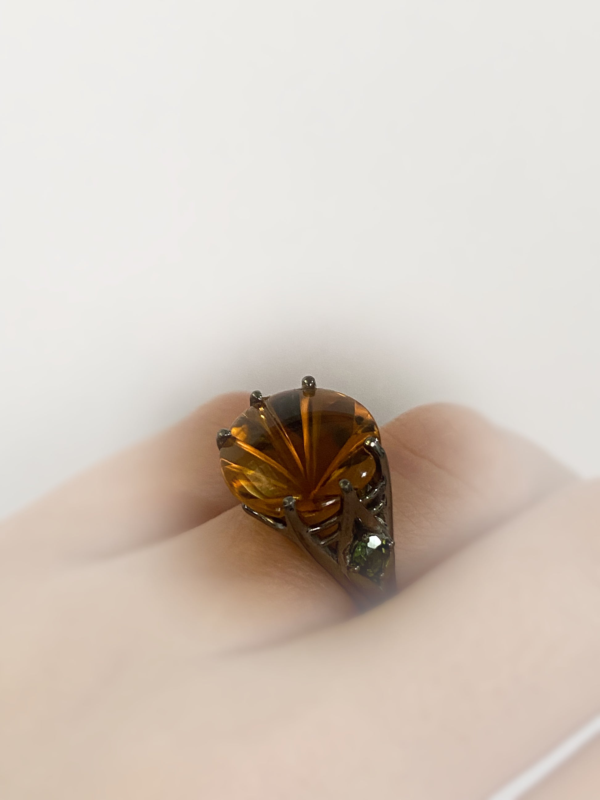 - Genuine 8.67 carat One of a Kind, Fantasy Cut Citrine Center Stone