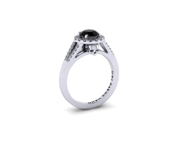 This engagement ring has a 6.5mm center that is surrounded by a halo of perfectly matched stones of your choice.