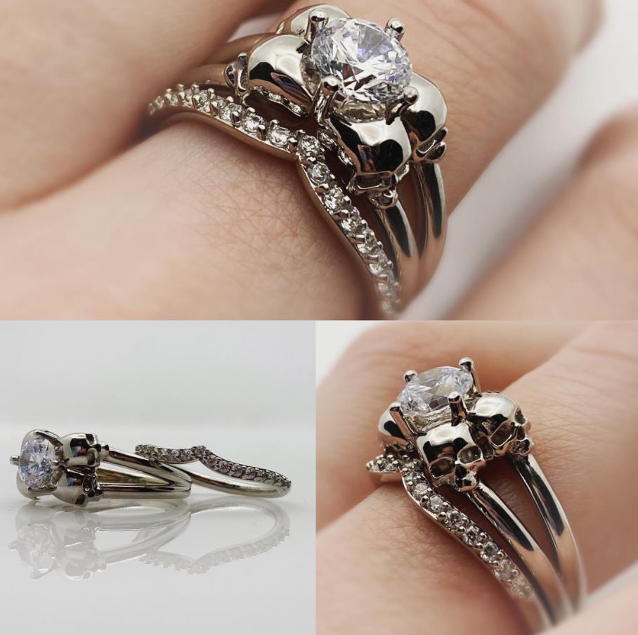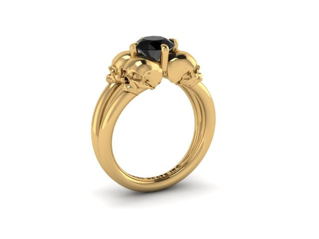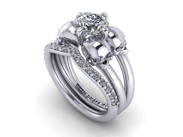 This engagement ring has a 6mm center stone of your choice and under the stone are a total of four hidden skulls.