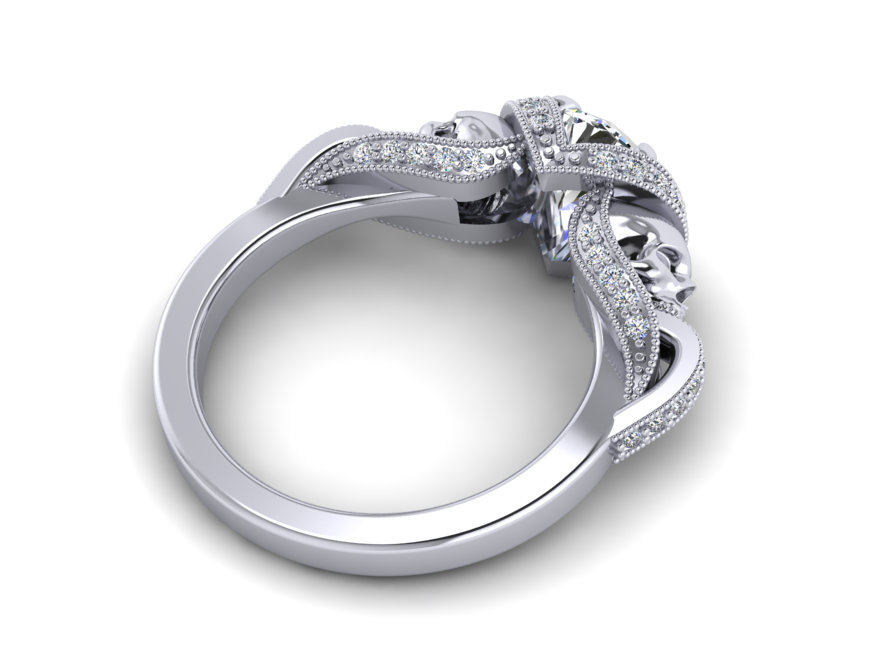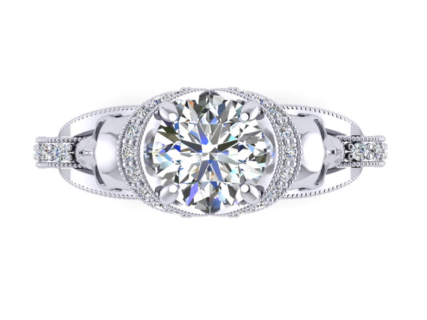 This engagement ring is surrounded by a halo of perfectly matched stones of your choice. This Halo shaped basket holds all of these stones.