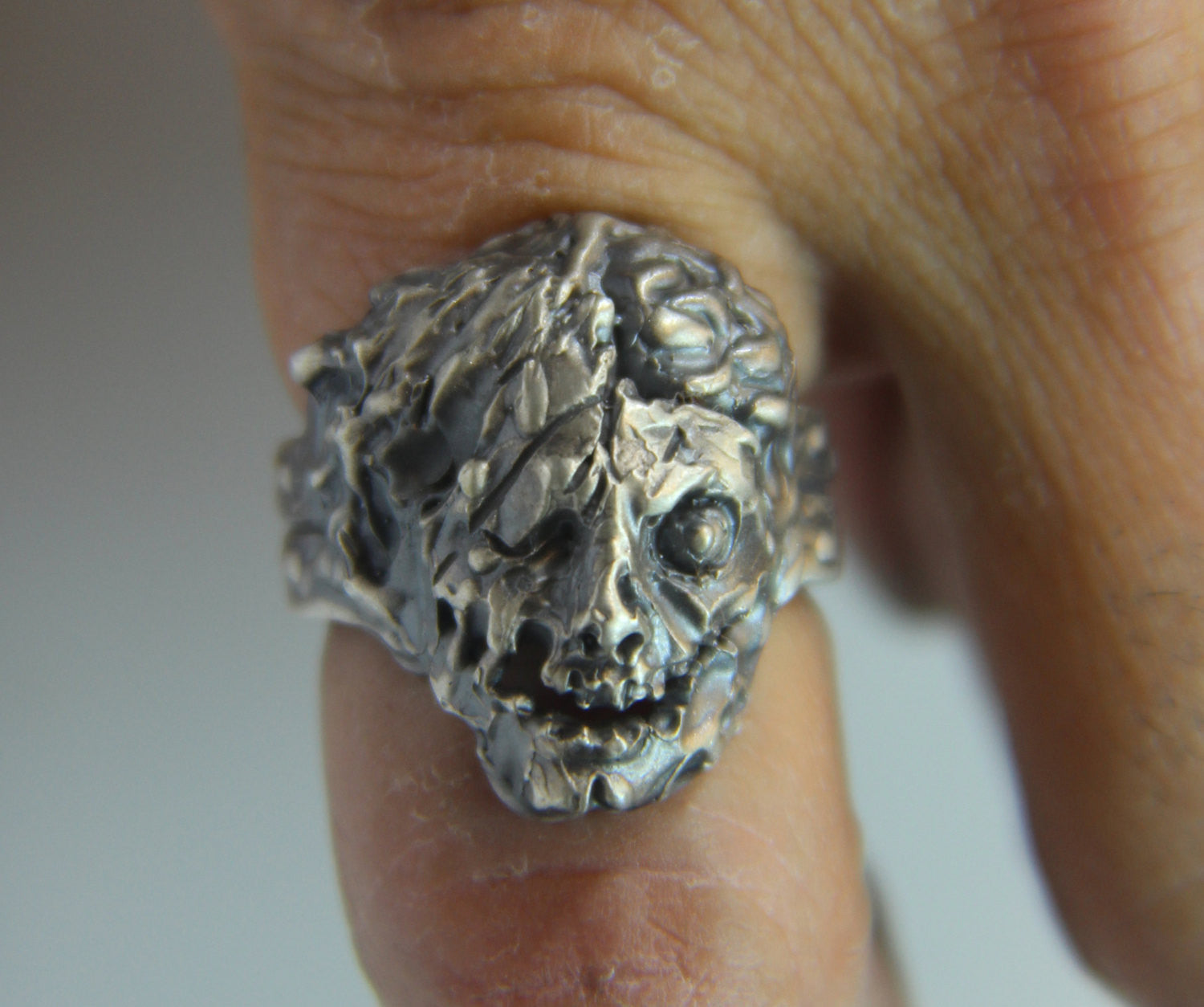 Until Death, Inc. "Zombie Ring" Huge .925 Sterling Silver Biker Skull Ring.-UDINC0092